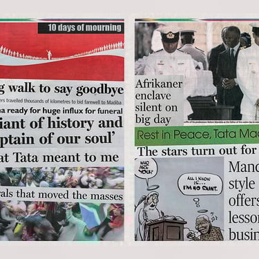 Come tanti conoscevo e ammiravo Nelson Mandela e la sua storia esemplare, ma solo nel buio dello studiolo di Andrea appena tornato dal Sudafrica, davanti alle immagini folli di un popolo che canta e balla nelle strade del funerale, ho avuto l’emozione diretta di chi veramente fosse quest’uomo, e cosa davvero rappresentasse per il suo popolo.